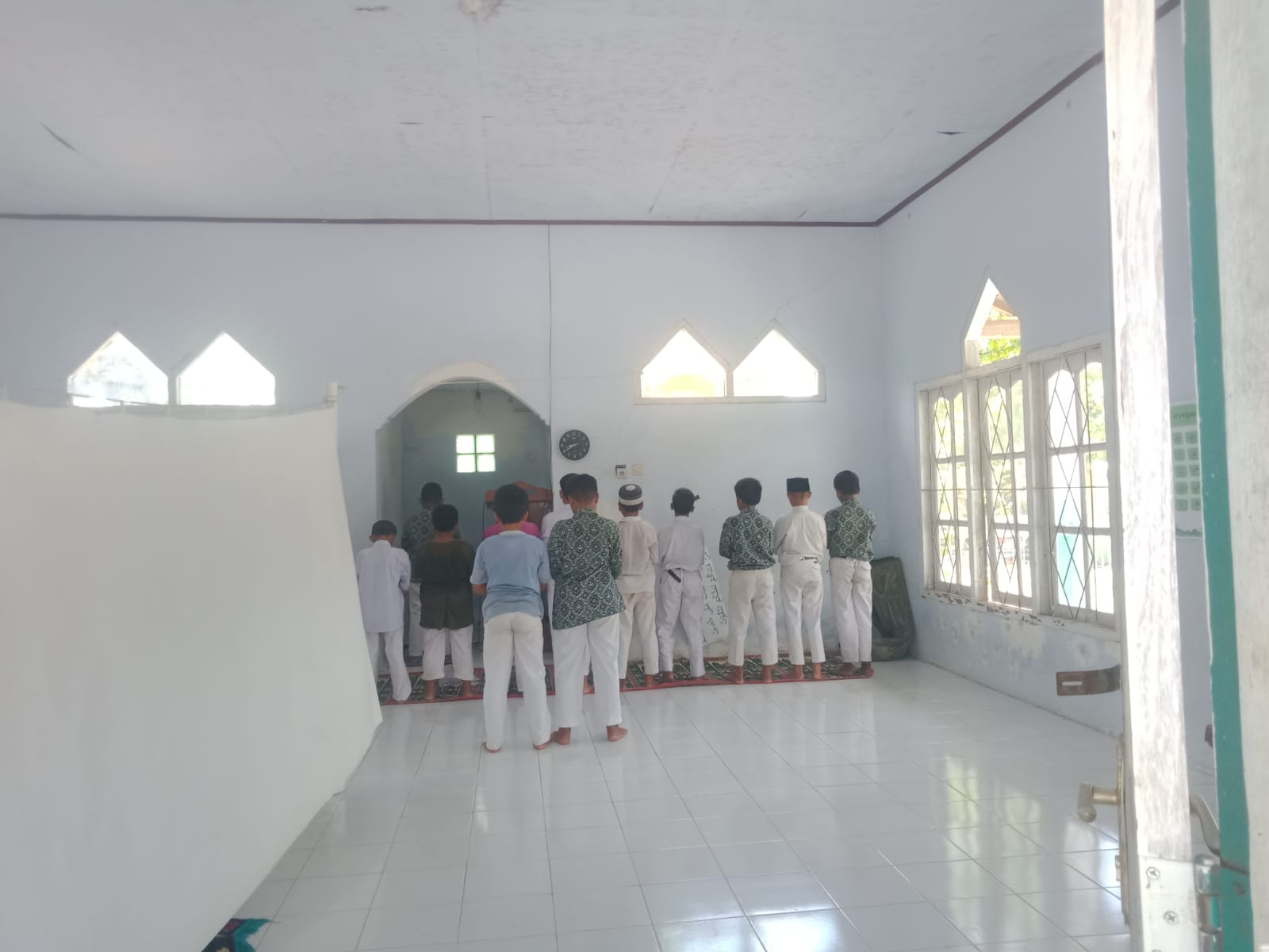 Sholat merupakan kegiatan wajib yang harus di laksanakan oleh seluruh muslim, SDN 14 Sadia Kota Bima merupakan salah satu sekolah yang menerapkan sholat dzuhur berjama'ah bagi seluruh peserta didiknya yang sebagian besar beragama islam, Kepala Sekolah SDN 14 Sadia Kota Bima menerapkan kegiatan ini agar seluruh peserta didik beserta dewan guru dapat melaksanakan kewajibannya dengan tepat waktu tanpa adanya batasan apapun serta meningkatkan keimanan serta ketaatan kepada Allah SWT. Penerapan kegiatan wajib ini akan di laksanakan setiap hari di musholah sekolah 5 menit sebelum azan dhuzur berkumandang akan ada beberapa peserta didik yang mendapatkan jadwal piket untuk membersihkan musholah sekolah terlebih dahulu sebelum sholat dzuhur di laksanakan, hal ini di lakukan untuk memberikan rasa nyaman serta beribadah dalam keadaan yang bersih dan suci. Sholat dzuhur berjama'ah hari ini berlangsung dengan lancar dari awal hingga akhir pelaksanaannya.