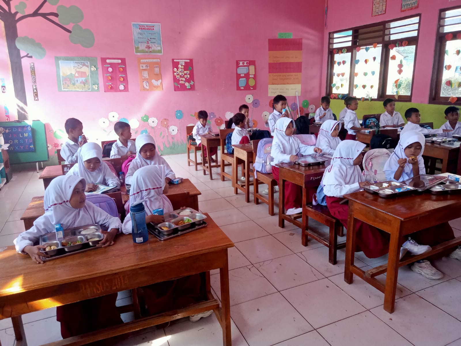 SEMANGAT PESERTA DIDIK I B MENIKMATI MAKAN BERGIZI GRATIS (MBG)