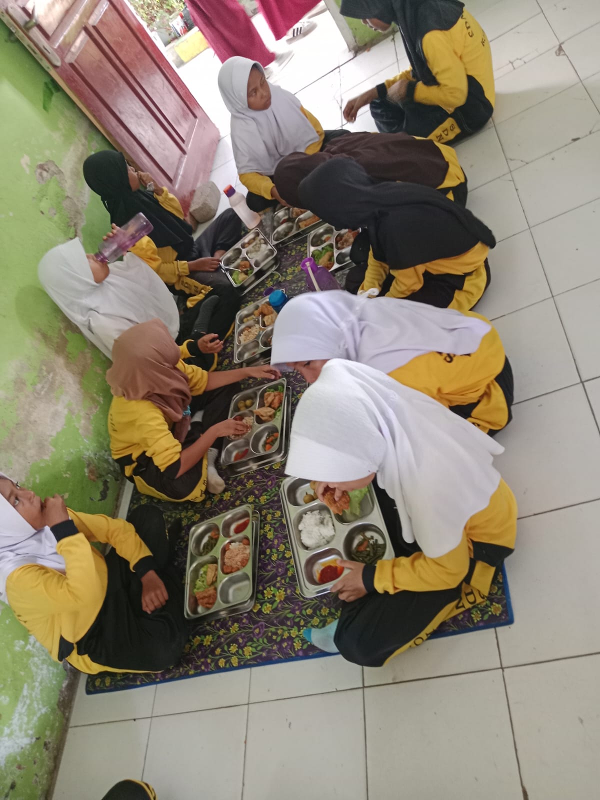 SEMANGAT MENIKMATI MAKAN BERGIZI GRATIS BERSAMA PESERTA DIDIK KELAS IV B SDN 14 SADIA KOTA BIMA