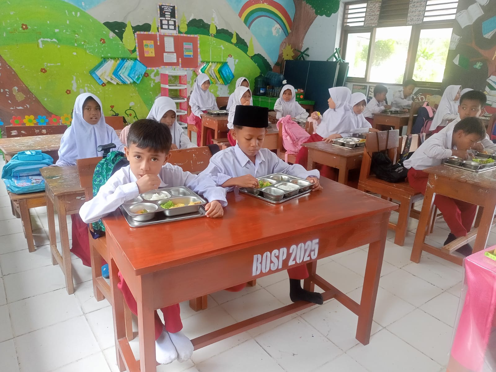 PESERTA DIDIK KELAS IV A MENIKMATI MAKAN BERGIZI GRATIS
