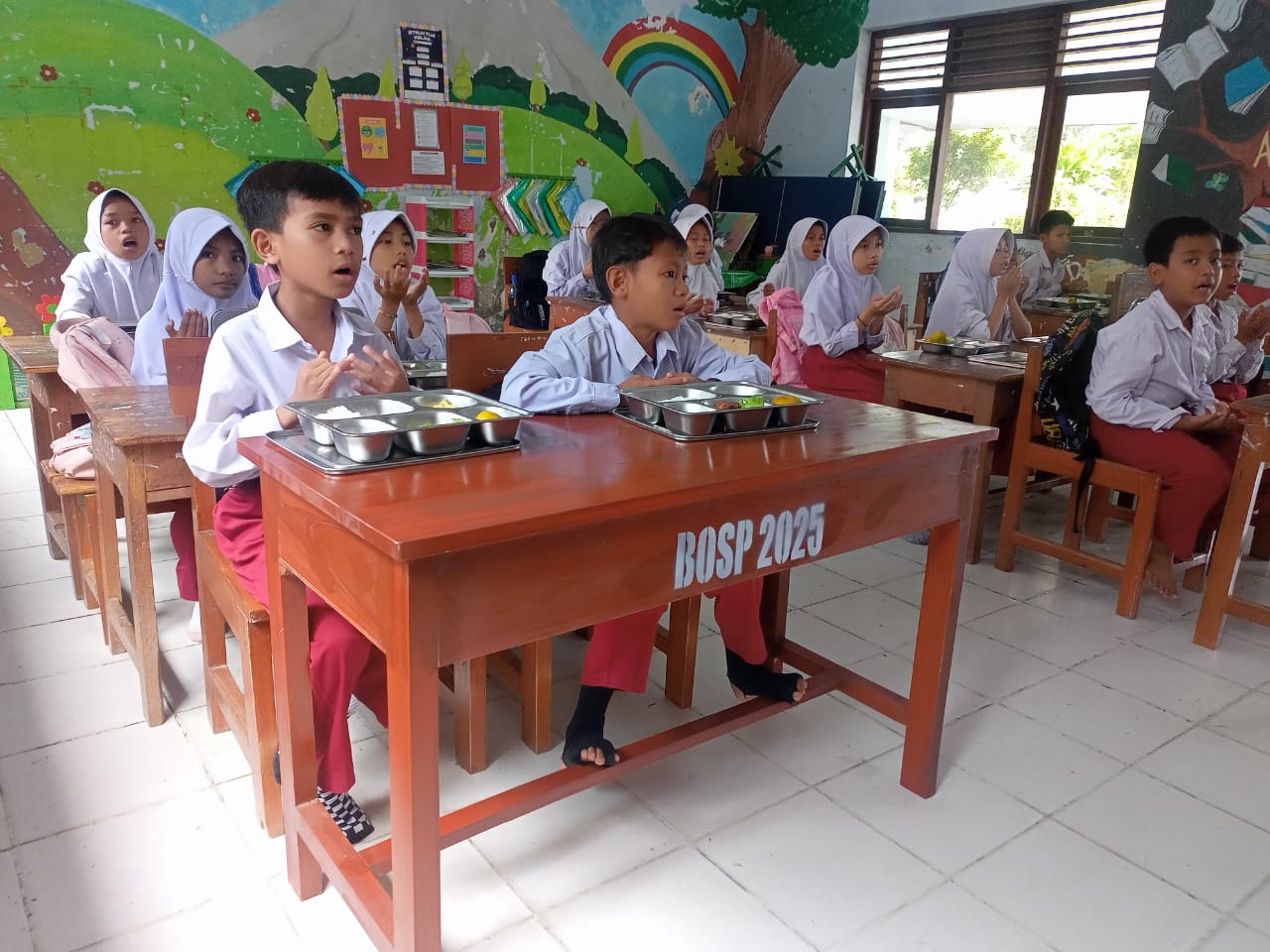 PESERTA DIDIK KELAS IV A MENIKMATI MAKAN BERGIZI GRATIS