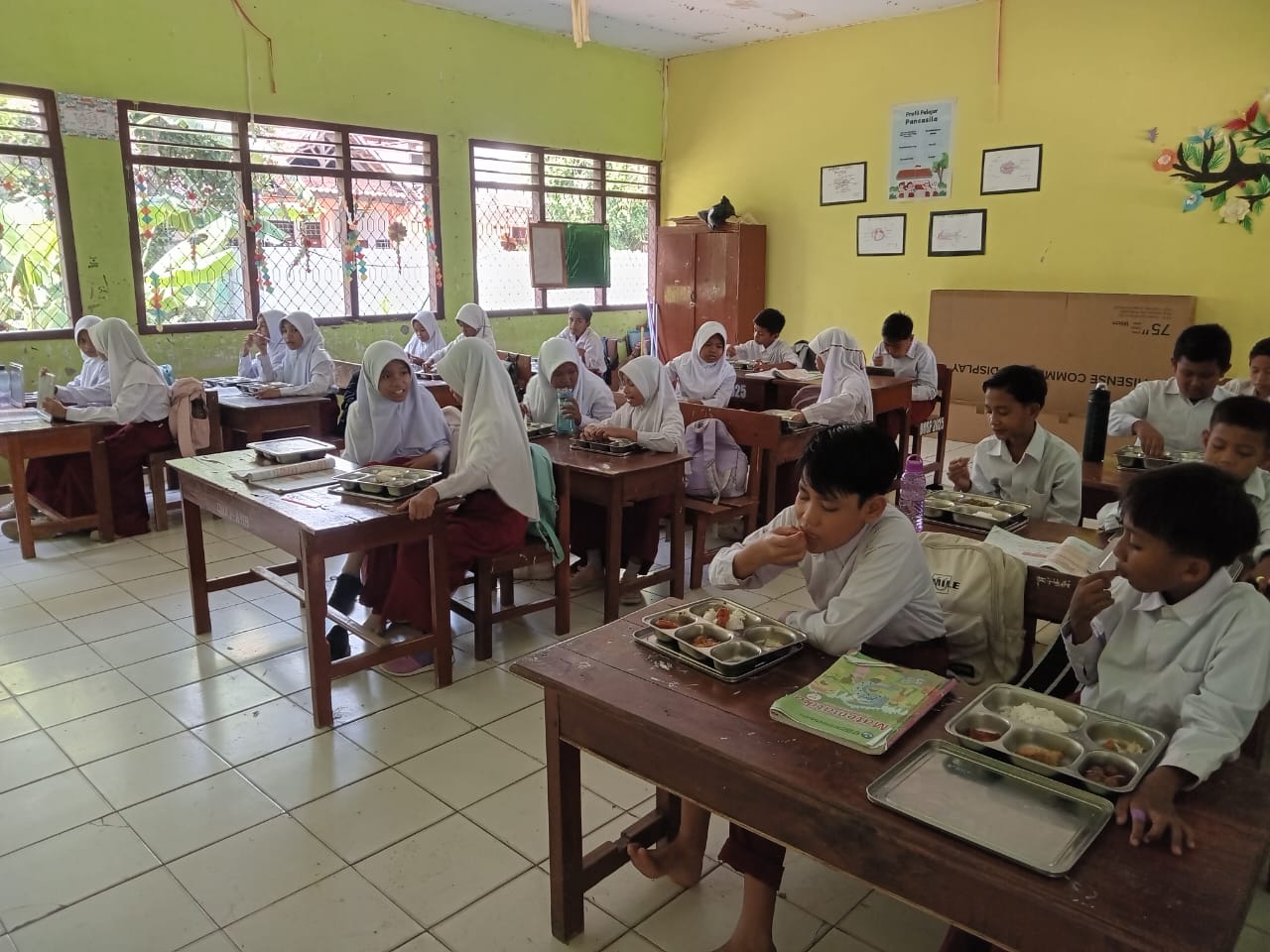 SEMANGAT PESERTA DIDIK KELAS V A MENIKMATI MAKAN BERGIZI GRATIS