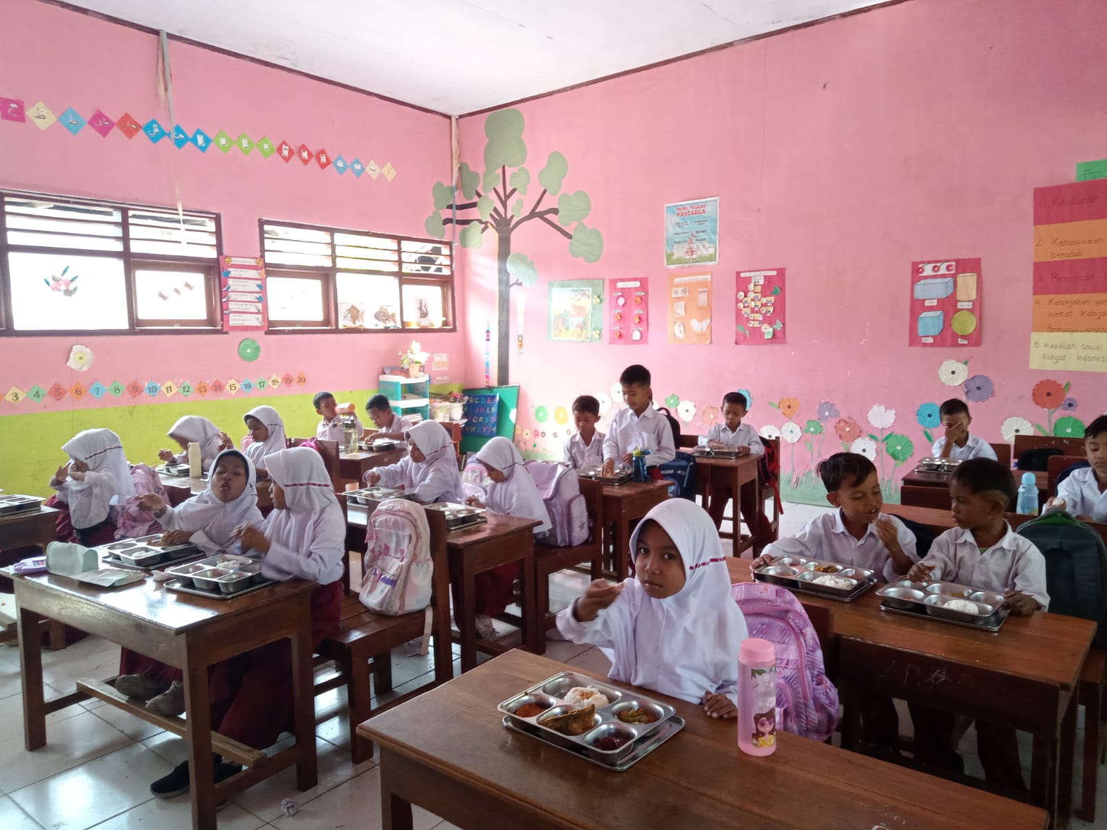 SENIN PAGI PESERTA DIDIK KELAS I B MENIKMATI MAKAN BERGIZI GRATIS
