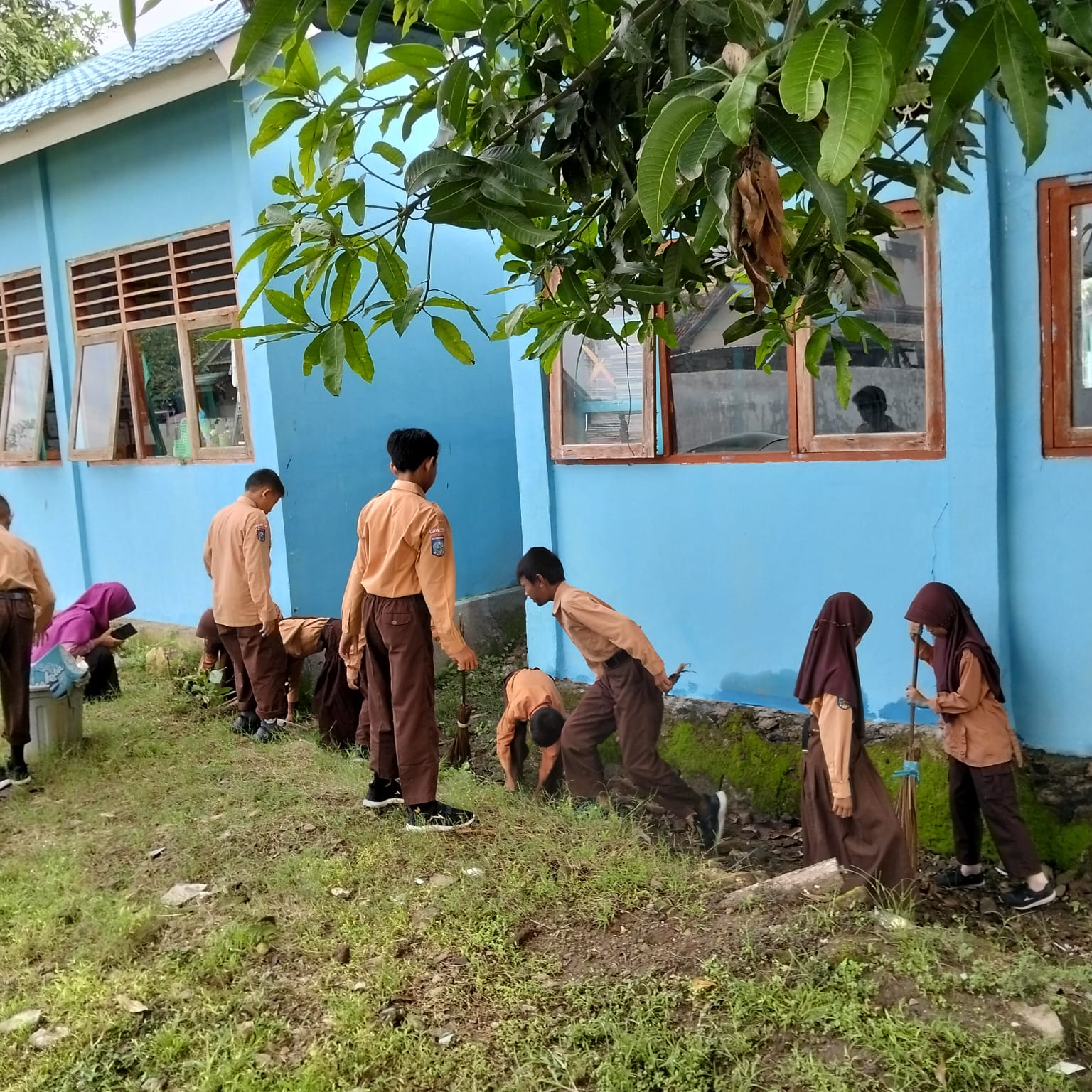 Pelaksanaan kegiatan senam pagi bersama pagi bersama telah di ikuti serta telah selesai di laksanakan seluruh peserta didik sebelum melaksanakan kegiatan belajar mengajar akan terlebih dahulu membersihkan halaman belakang kelasnya, mulai dari peserta didik kelas VI langsung bergegas di arahkan untuk bersama-sama melakukan pembersihan halaman belakang kelas  mulai dari mencabut rumput, memungut sampah-sampah sisa bungkusan makanan yang tercecer di sekitaran halaman kelas. Peserta didik begitu antusias melaksanakan kegiatan ini dari awal hingga akhir pelaksanaannya berjalan dengan lancar tanpa adanya hambatan.