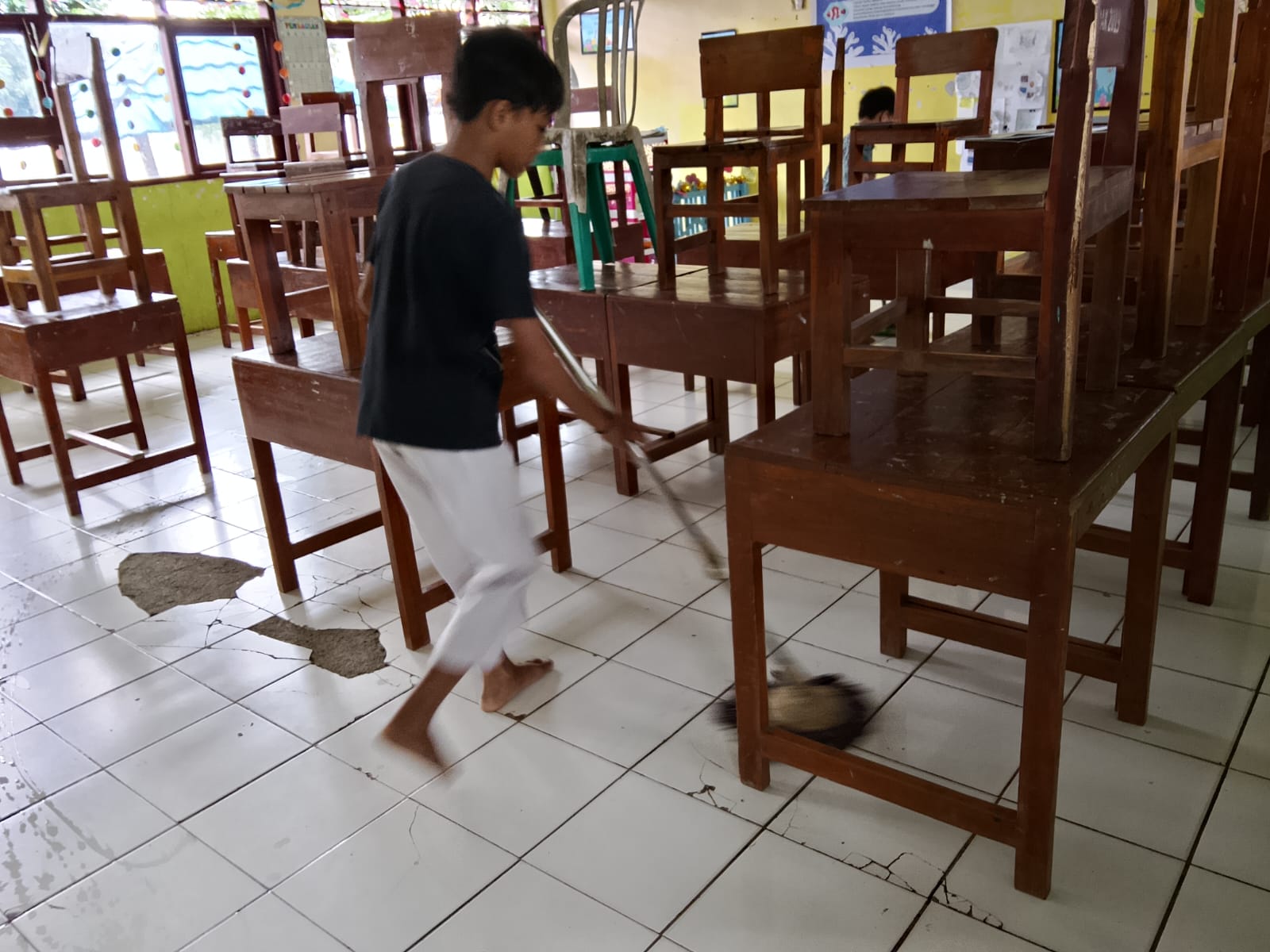 MEMBERSIHKAN RUANGAN KELAS SEBELUM PULANG SEKOLAH BERSAMA PESERTA DIDIK KELAS VI A
