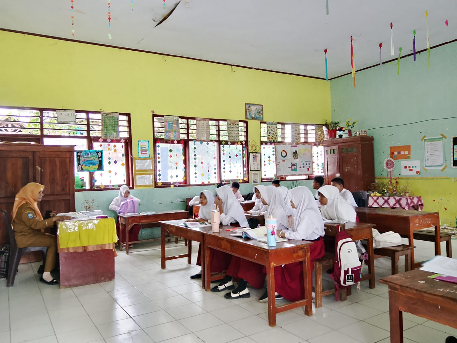 Hari ini kelas V B setelah mengikuti kegiatan Sarapan Pagi Bersama yang dilaksanakan setiap hari Rabu pagi kelas V B akan melanjutkan dengan kegiatan belajar mengajar bersama dengan guru kelasnya Ibu Erna Eryati,S.Pd dengan mata pelajaran Matematika, sebelum memulai pelajaran hari ini peserta didik bersama dengan guru kelasnya akan berbaris di depan kelasnya terlebih dahulu untuk memeriksa kuku dan rambut peserta didiknya baru peserta didik masuk ke dalam kelasnya dan bersama-sama membaca do'a sebelum belajar agar pelaksanaan kegiatan belajar mengajar berjalan dengan lancar tanpa adanya hambatan. Pembelajaran di mulai tepat waktu dan peserta didik dengan tenang mendengarkan penjelasan materi yang di sampaikan oleh gurunya, kegiatan belajar mengajar berlangsung dengan lancar tanpa adanya hambatan.