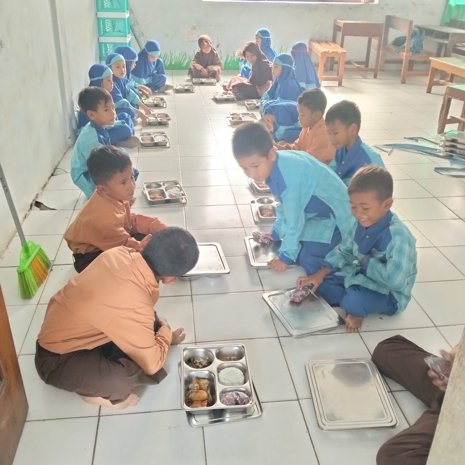 Peserta didik kelas II B hari ini kembali menikmati makan bergizi gratis, peserta didik kelas II B begitu antusias dan menikmati setiap hidangan menu yang di bawa. Program Makan Bergizi Gratis (MBG) adalah inisiatif pemerintah untuk menyediakan makanan bergizi untuk siswa sekolah, dengan tujuan meningkatkan kesehatan dan prestasi belajar mereka. Program ini telah diluncurkan di berbagai daerah di Indonesia salah satunya di Kota Bima dan menjadi bagian dari komitmen pemerintah untuk meningkatkan kualitas pendidikan dan kesejahteraan anak-anak. MBG juga diharapkan dapat membantu peserta didik menghemat uang saku mereka dan mendorong kebiasaan menabung.