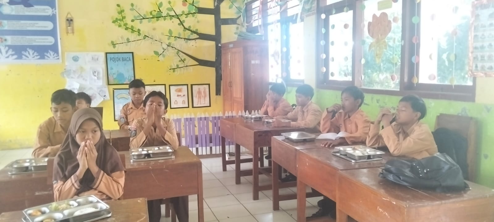 PEMBIASAAN WAJIB BERDO'A SEBELUM MAKAN BERSAMA PESERTA DIDIK KELAS VI A SDN 14 SADIA KOTA BIMA