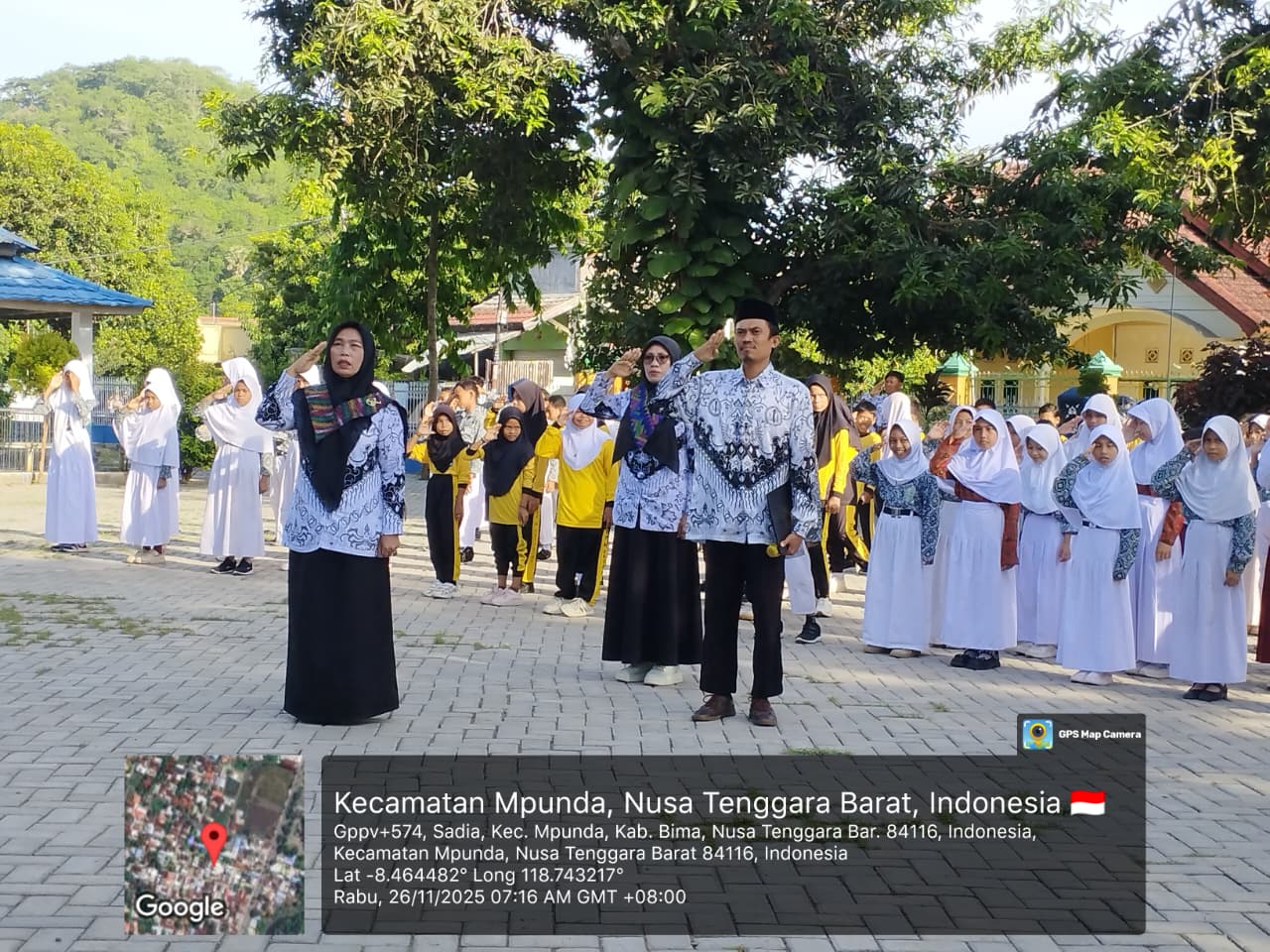 PESERTA DIDIK SDN 14 SADIA KOTA BIMA MENGIKUTI UPACAR MEMPERIBARTI HARI GURU NASIONAL KE 80 TAHUN